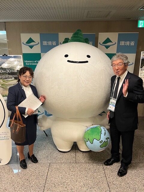 会場にて、環境省ネイチャーポジティブのイメージキャラクター「だいだらポジー」と北田理事長・北田副理事長とで、記念撮影をしてきました!